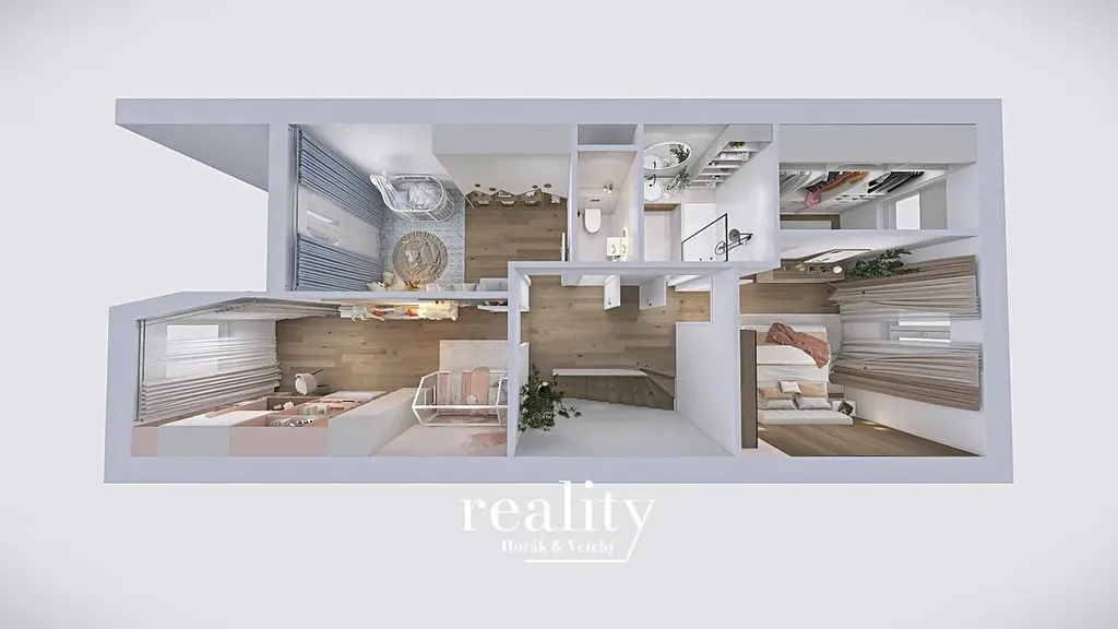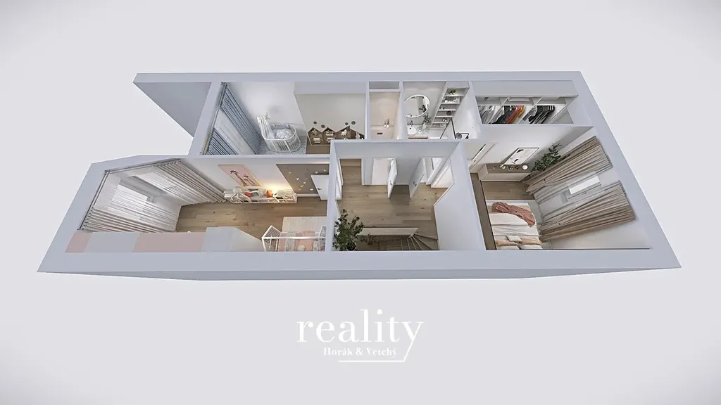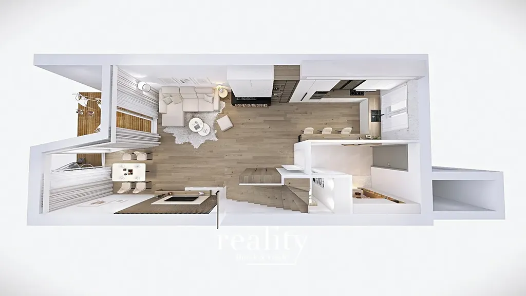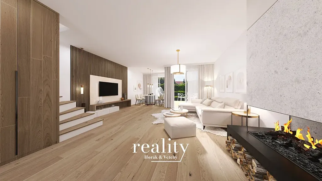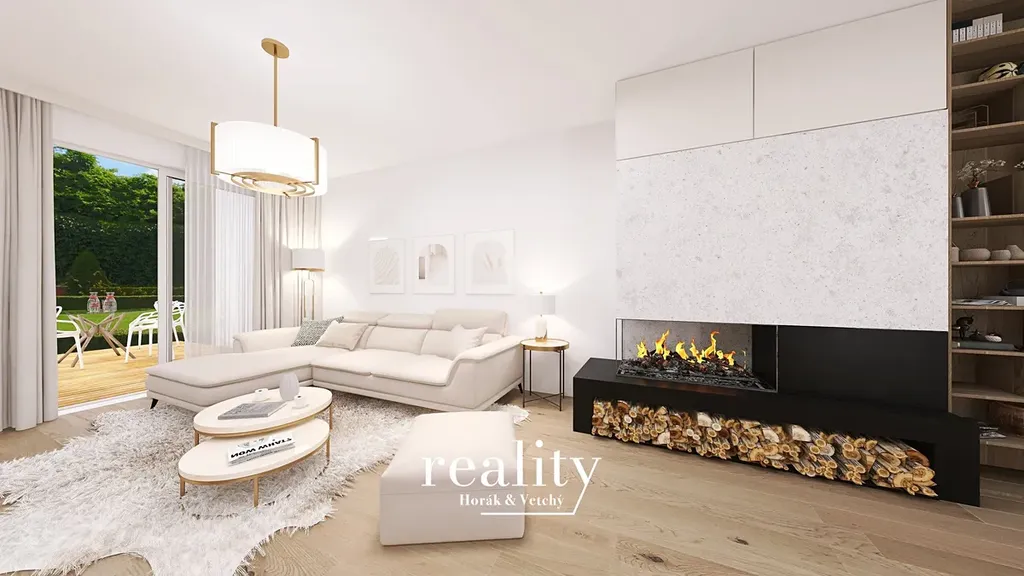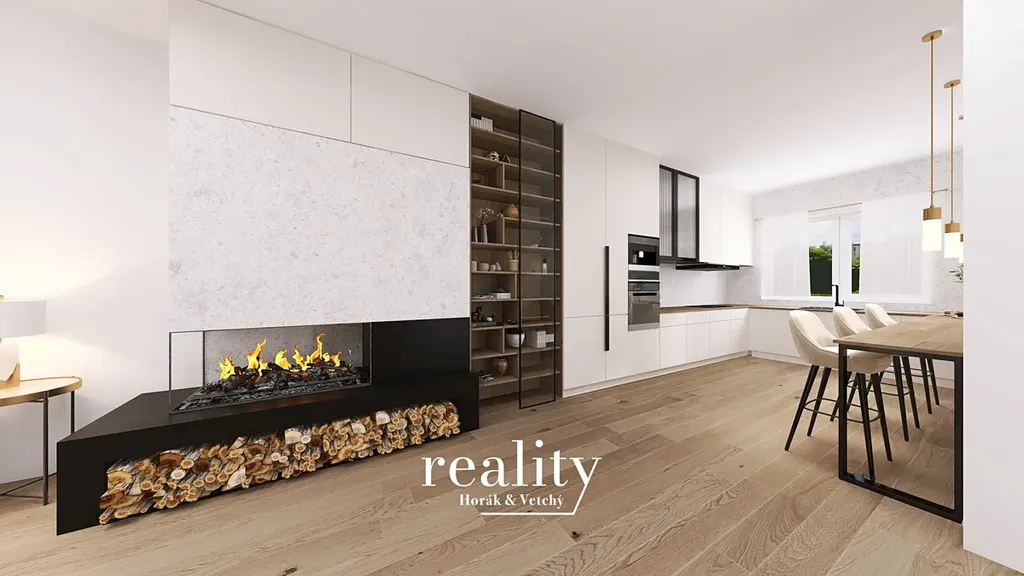 V inzerci je použita vizualizace vnitřních prostor domů.