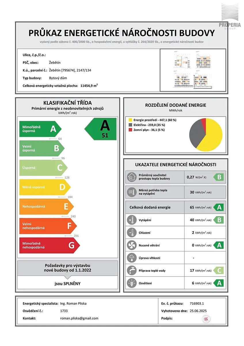 • Úsporný provoz: Energetická třída A a vytápění tepelnými čerpadly zaručují minimální měsíční náklady.