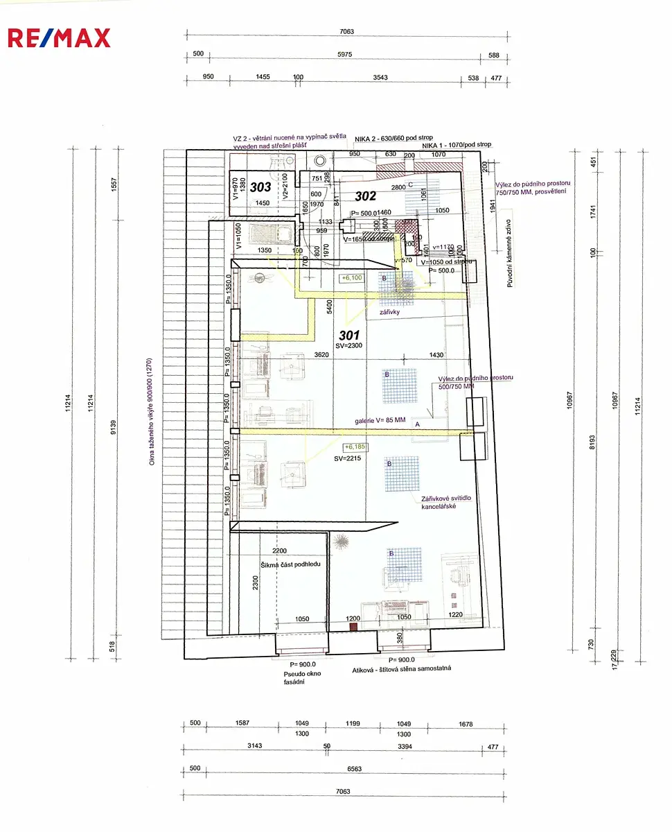 1. NP: Jednací místnost s kuchyňským koutem, samostatné WC, sklad a chodba s technickým zázemím.
