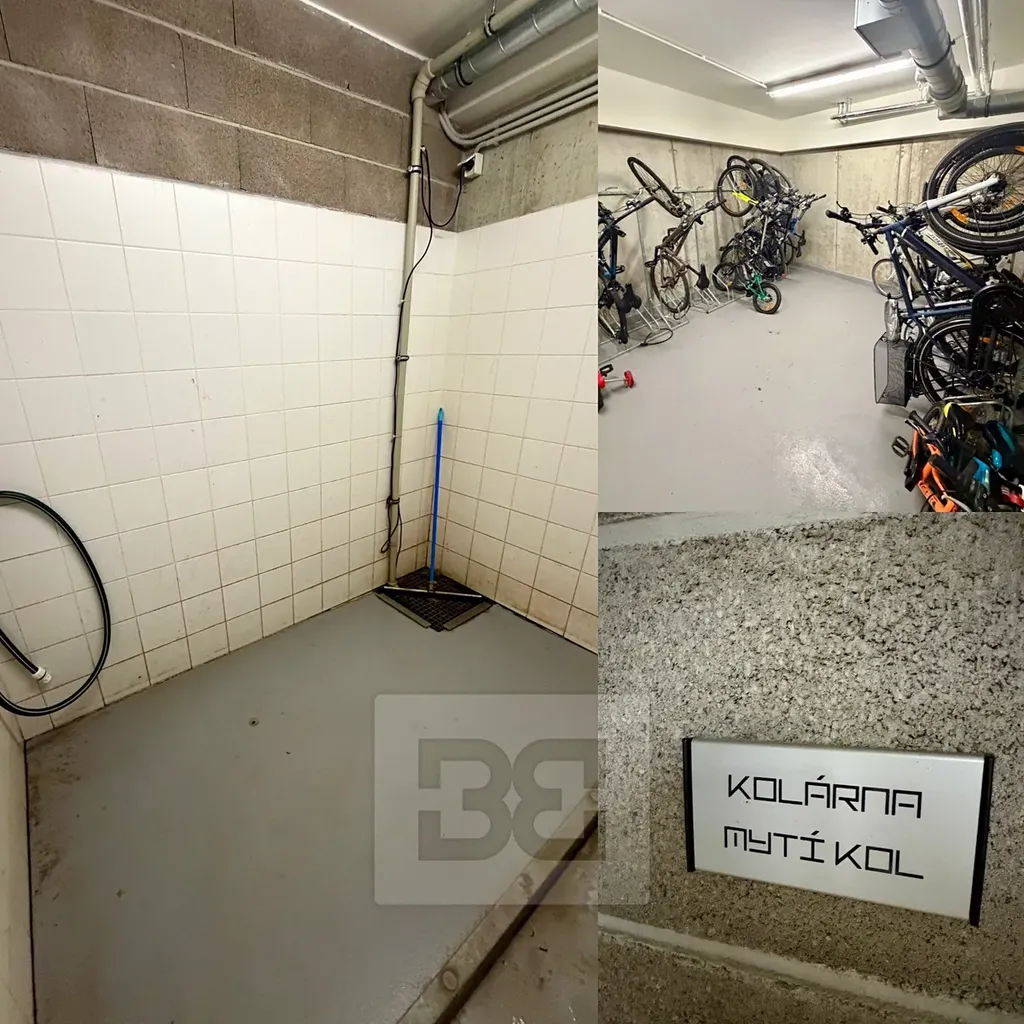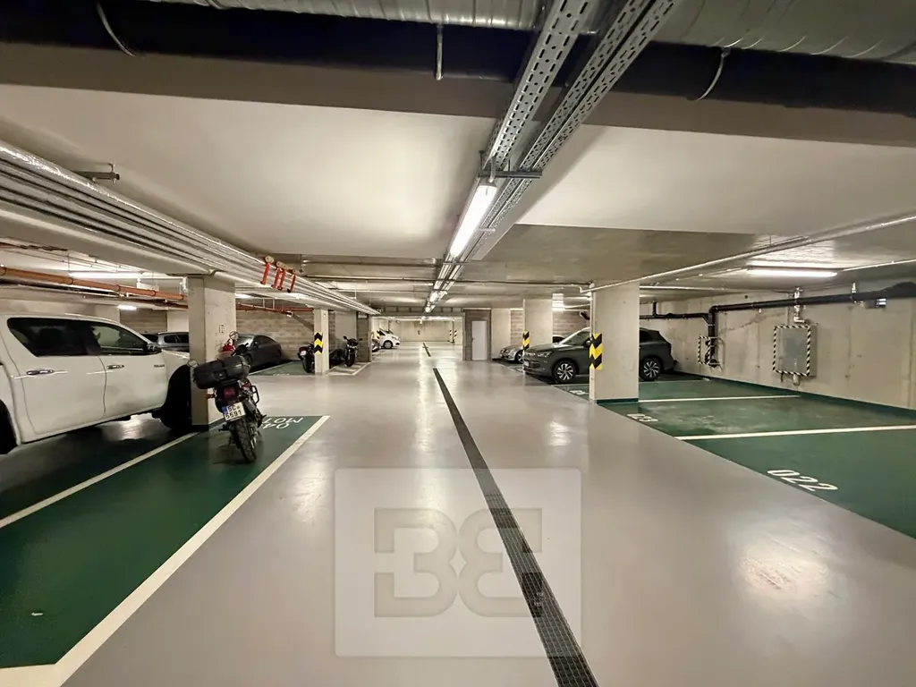 K bytu přísluší sklep (2,9m2) a parkovací stání, jež může být opatřeno wall boxem pro nabíjení elektroaut (samostatný dvojtarifový elektroměr). K dispozici je společná kolárna s mycím boxem či společná kočárkárna. Efektivitu budovy podtrhuje FV na střeše budovy či např. nádrže na dešťovou vodu, kterou se splachuje wc.