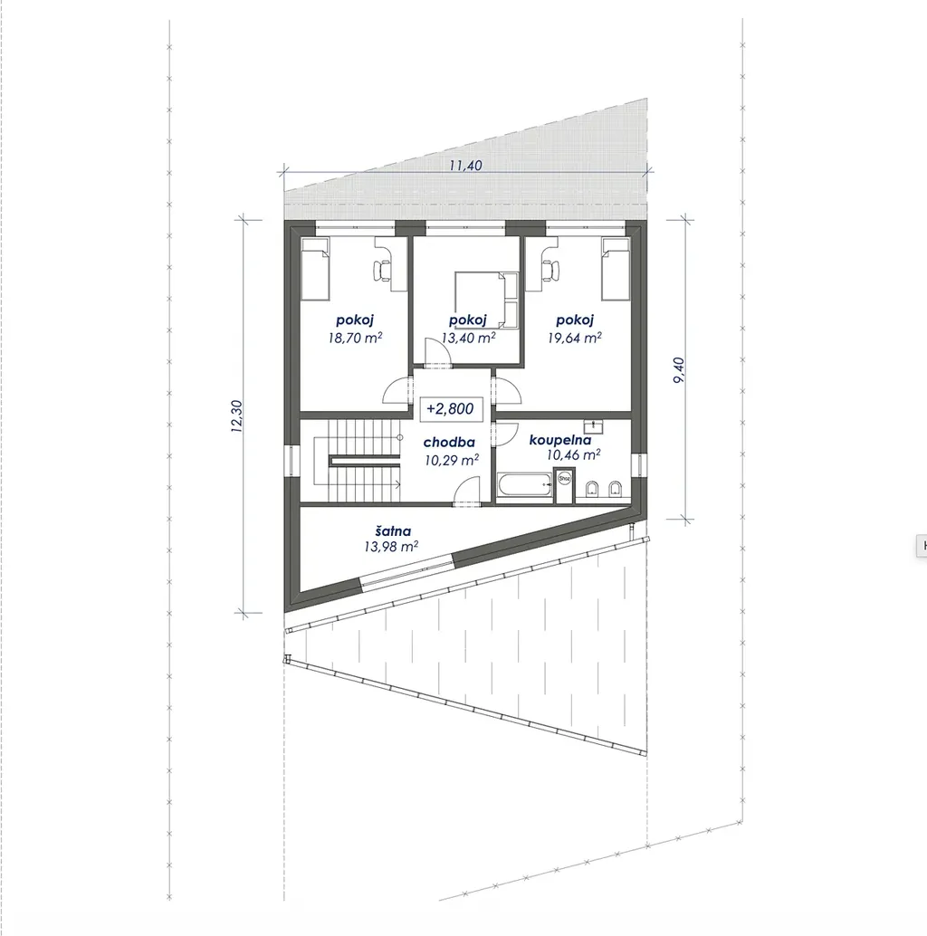 nutnost řešit 2. nadzemní podlaží jako obytné podkroví (nikoliv plnohodnotné patro)