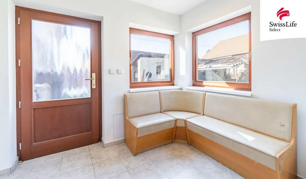 Prostorný rodinný dům, kde můžete mít zázemí i pro své podnikání, nabízí dispozici 6+1. V přízemí je v ústřední místnosti nová kuchyňská linka, dvě původní obnovené niky, dřevěné trámy a stropy. Dále dva částečně obnovené pokoje, dvě chodby, koupelna a samostatné WC. Podlahy jsou z litého betonu a dlaždic.