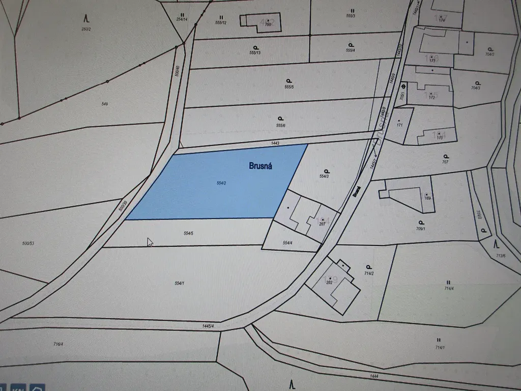 Pozemek je situovaný v obci Brusná nedaleko Lhenic (cca 2 km od Lhenic, 18 km od Prachatic, 29 km od Č.B., 42 km od Strakonic, 38 km od Písku, 139 km od Prahy).