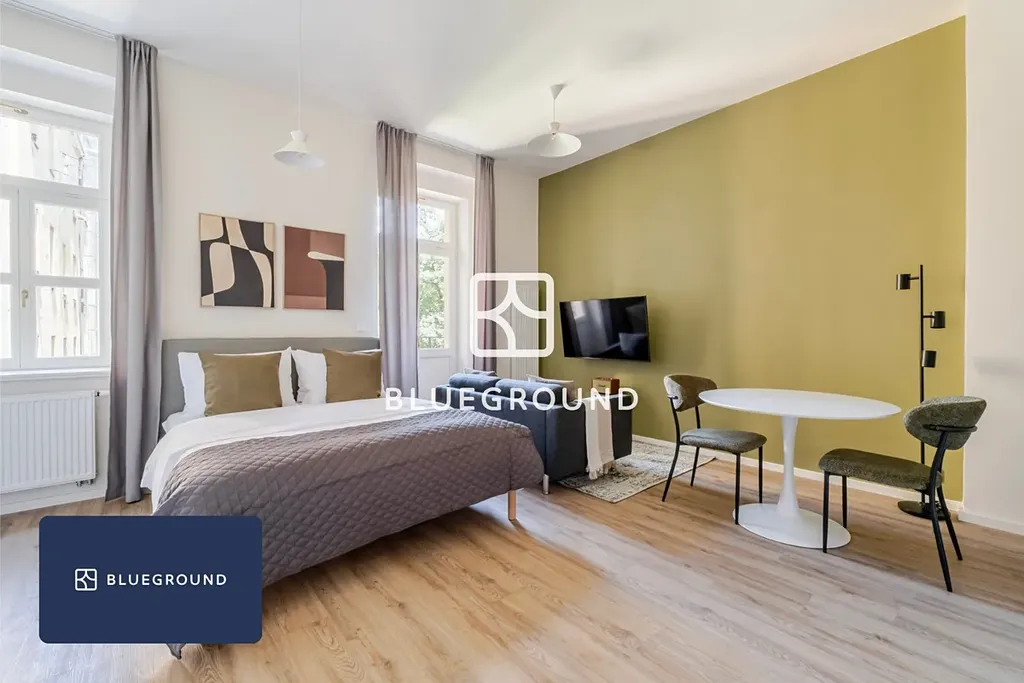 Nastěhujte se do profesionálně spravovaného bytu od Blueground v Holešovicích, kde je nábytek, plně vybavená kuchyň, Wi-Fi i veškeré energie již zahrnuty v ceně. Stačí si přivézt kufr a můžete se cítit jako doma hned od prvního dne.