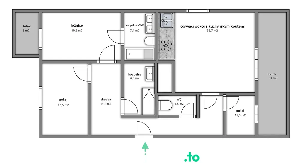 + lodžie 11 m² přístupná z více místností