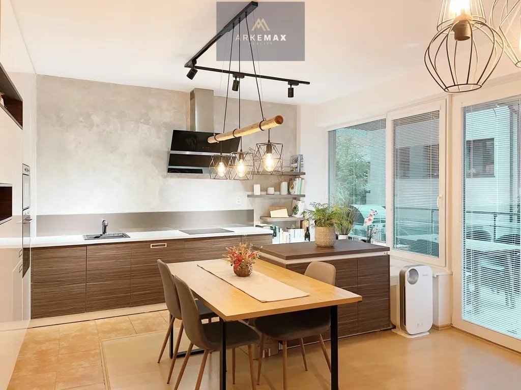 Dominantou bytu je prostorný obývací pokoj s kuchyňským koutem, který plynule navazuje na terasu – ideální místo pro relaxaci, posezení s rodinou či přáteli. Byt dále disponuje třemi samostatnými pokoji, prostornou koupelnou a dvěma toaletami.