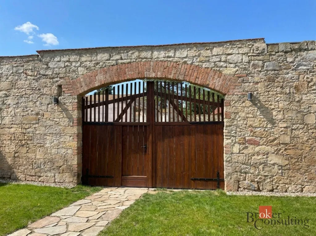 • částečné oplocení z opuky s krásným obloukem a bránou