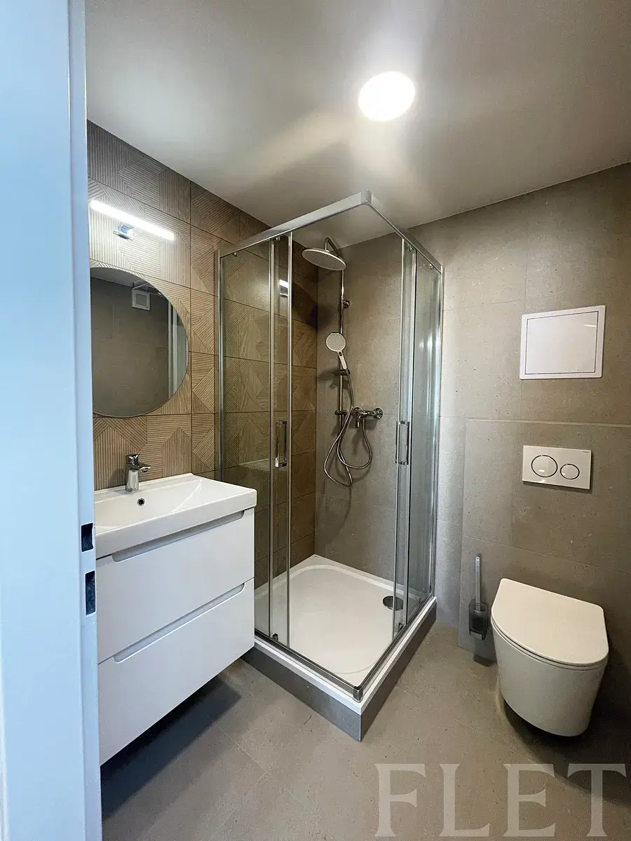 Dispozice 3 pokoje = 3 koupelny: Byt je rozdělen na tři samostatné neprůchozí pokoje. Dva z nich mají koupelnu přímo v pokoji (en-suite), třetí pokoj využívá vlastní koupelnu umístěnou na chodbě bytu. Sdílená je pouze plně vybavená kuchyň.