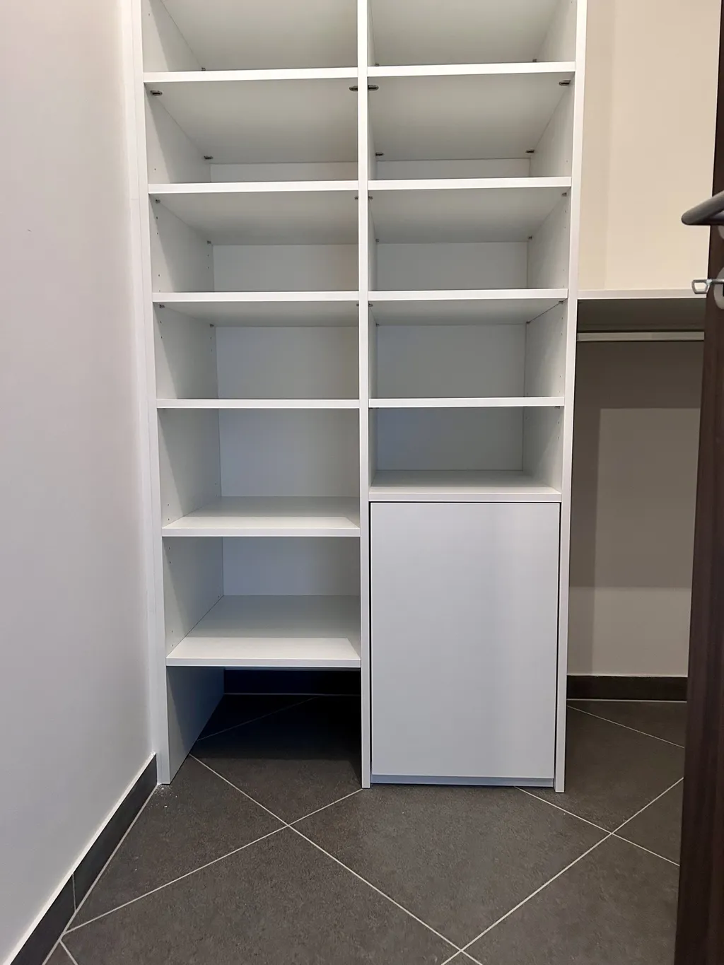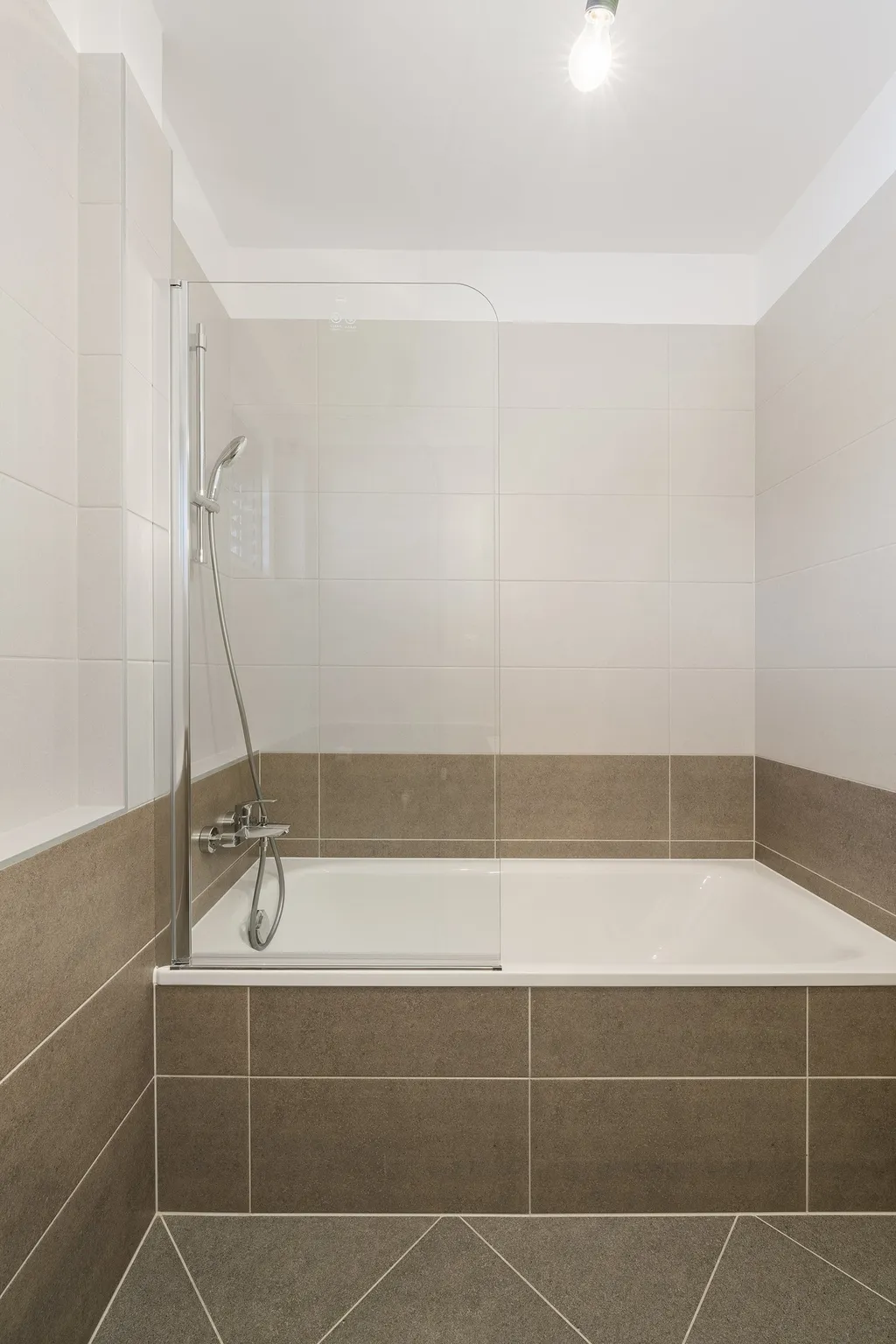 Byt nabízí dostatek úložných prostor díky praktické komoře s vestavnými policemi umístěné v bytě a sklepu umístěného u garážového stání. Koupelna je vybaven vanou, umyvadlem se skříňkou, zrcadlem, topným žebříkem a přípravu na pračku i sušičku. Samostatná toaleta. Všechna okna jsou vybavena elektrickými žaluziemi.