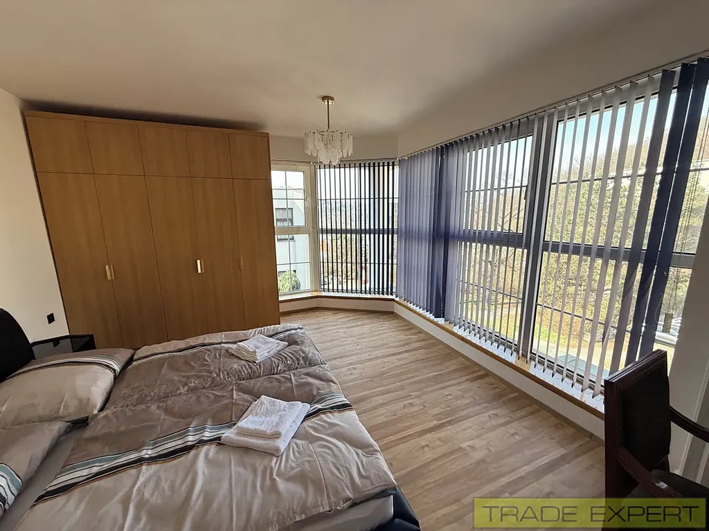 Byt je součástí luxusní vily postavené ve svahu, díky čemuž nabízí krásný výhled na Barrandovský most a Barrandovskou kaskádu. Byt je ideální pro nájemce, kteří hledají klidné, elegantní a plně servisované bydlení v Praze.