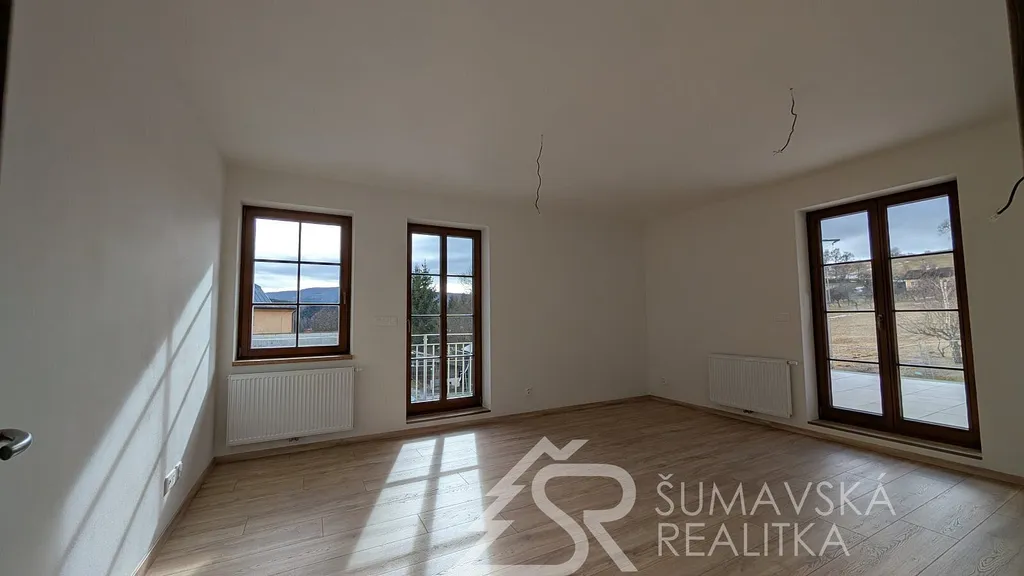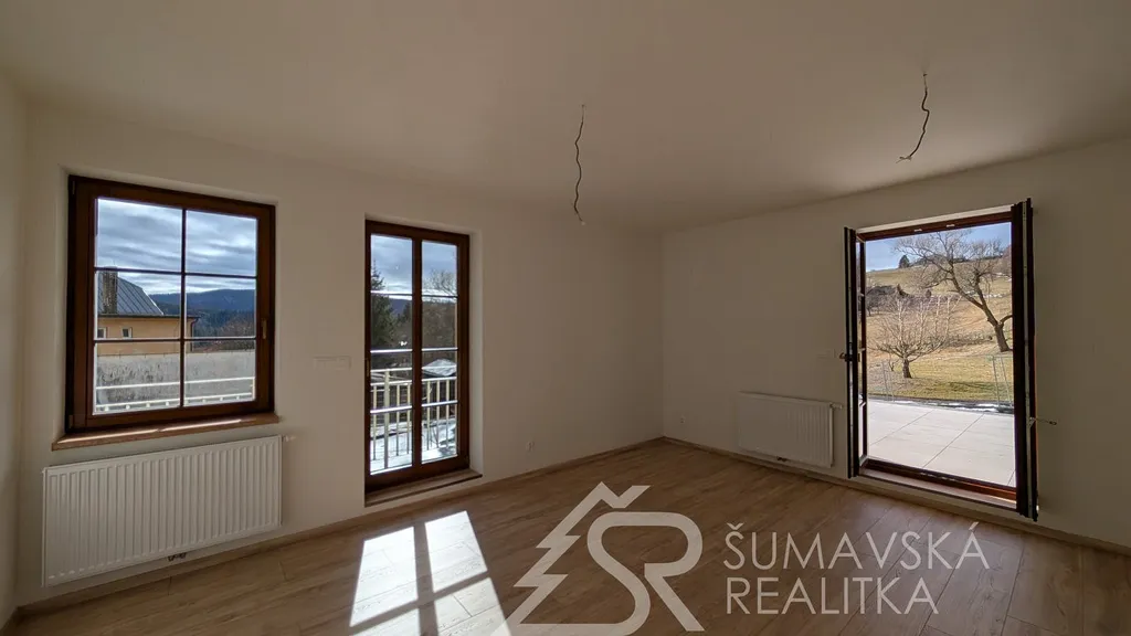 NOVÝ BYT 2+kk S OHROMNOU TERASOU - KAŠPERSKÉ HORY - ŠUMAVA. Lokalita: zcela nový, právě dokončovaný bytový dům o 24 bytech má dobrou adresu na Šumavě - v malebném horském středisku Kašperské Hory 758 m n. m. Nad ním završuje siluetu okolních hor nejvýše položený hrad v Čechách - středověký Kašperk založený Karlem IV. k ostraze zemské hranice a Zlaté stezky. Hrad Kašperk je dominantou města a spolu s nádhernou krajinou vytváří kouzlo spojení se starou Šumavou. Malebné náměstí s renovovanými historickými domy, kašnou, radnicí, která by mohla být kulisou do pohádky a gotickým kostelem sv. Markéty. V Kašperských Horách se alespoň na chvíli přenesete do doby Karla IV. Ve městě je perfektní občanská vybavenost (škola, školka, lékařský dům, kino, muzea, knihovna, obchody a restaurace s příjemným posezením). Na okraji města směrem k Amáliinu údolí je moderní SKIAREÁL, vybavený večerním osvětlením sjezdovek a lyžařskou školou s půjčovnou. V létě najdete v okolí mnoho krásných míst dostupných na elektrokolech nebo pěší turistikou.