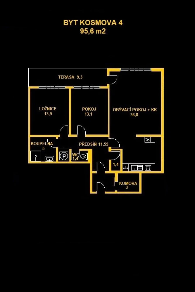 K dlouhodobému pronájmu nabízíme byt o dispozici 3+kk s celkovou výměrou 95,6 m² včetně balkónu. Byt se nachází ve velmi oblíbené lokalitě na ulici Kosmova, Brno-Královo Pole.