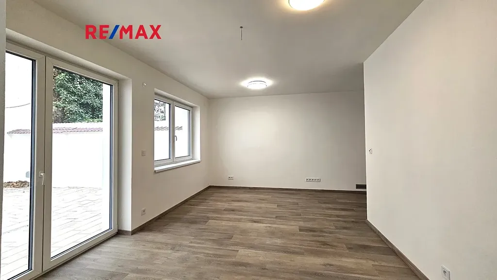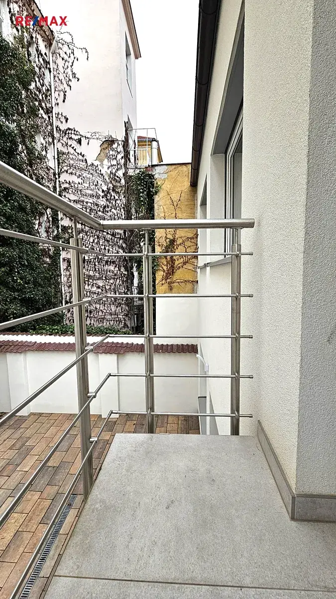 Byt je dvoupodlažní, zcela nově zrekonstruovaný a náleží k němu dvůr přístupný pouze budoucím nájemníkům.