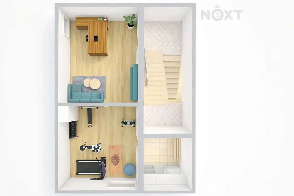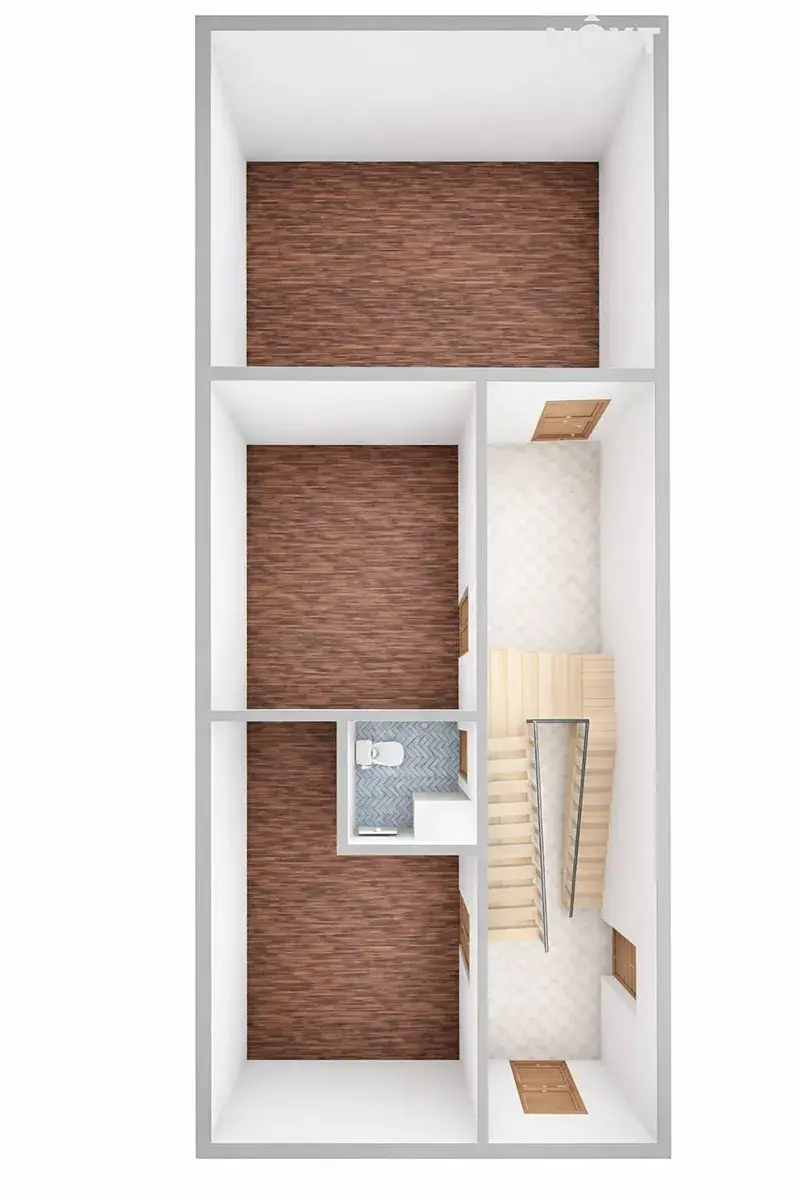 V mezipatře domu se nachází další dva pokoje, přičemž jeden je průchozí – vhodné např. jako pracovna, posilovna, pokoj pro hosty či rozšíření obytného prostoru.