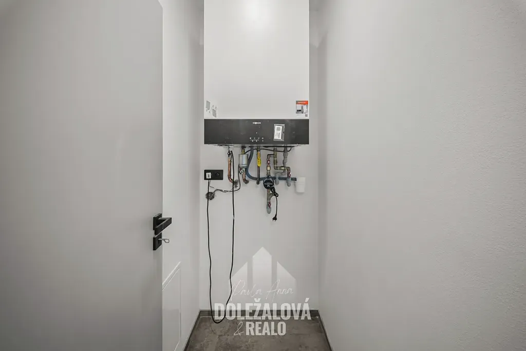 Dům je vytápěn podlahovým topením napojeným na plynový kotel, což zajišťuje příjemný tepelný komfort a efektivní provoz. Samozřejmostí je moderní zabezpečení v podobě kamerového systému a elektronického vrátného, které zvyšují komfort i pocit bezpečí. Jedná se o novostavbu splňující současné nároky na kvalitní a úsporné bydlení.