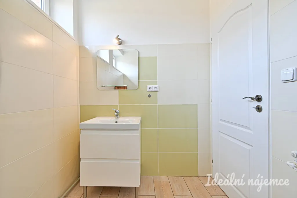 V koupelně se nachází sprchový kout, umyvadlo, zrcadlo. WC je samostatné. Na podlahách je dlažba. Je možno využívat terásku před bytem pro pěstování rostli a posezení.