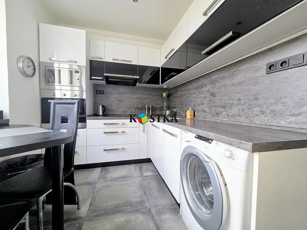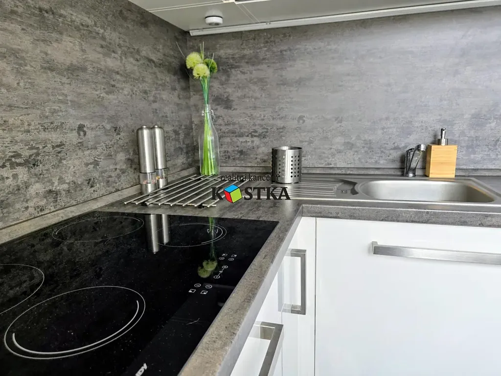 V kuchyni je plně vybavená linka s indukční varnou deskou, digestoří, troubou, mikrovlnou troubou a myčkou nádobí. Lednice a pračka je samozřejmostí. Koupelna je osazena sprchovým koutem a umyvadlem. Toaleta je samostatná se závěsnou WC mísou.