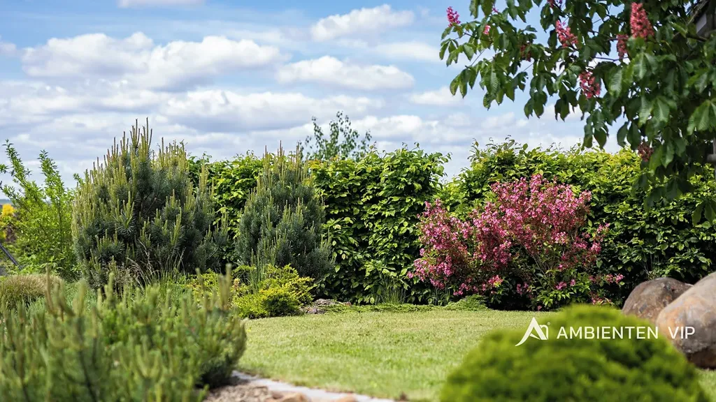 Zahrada má přípravu na bazén (je zde dovedena elektřina a voda) a disponuje také nádrží na dešťovou vodu s čerpadlem.