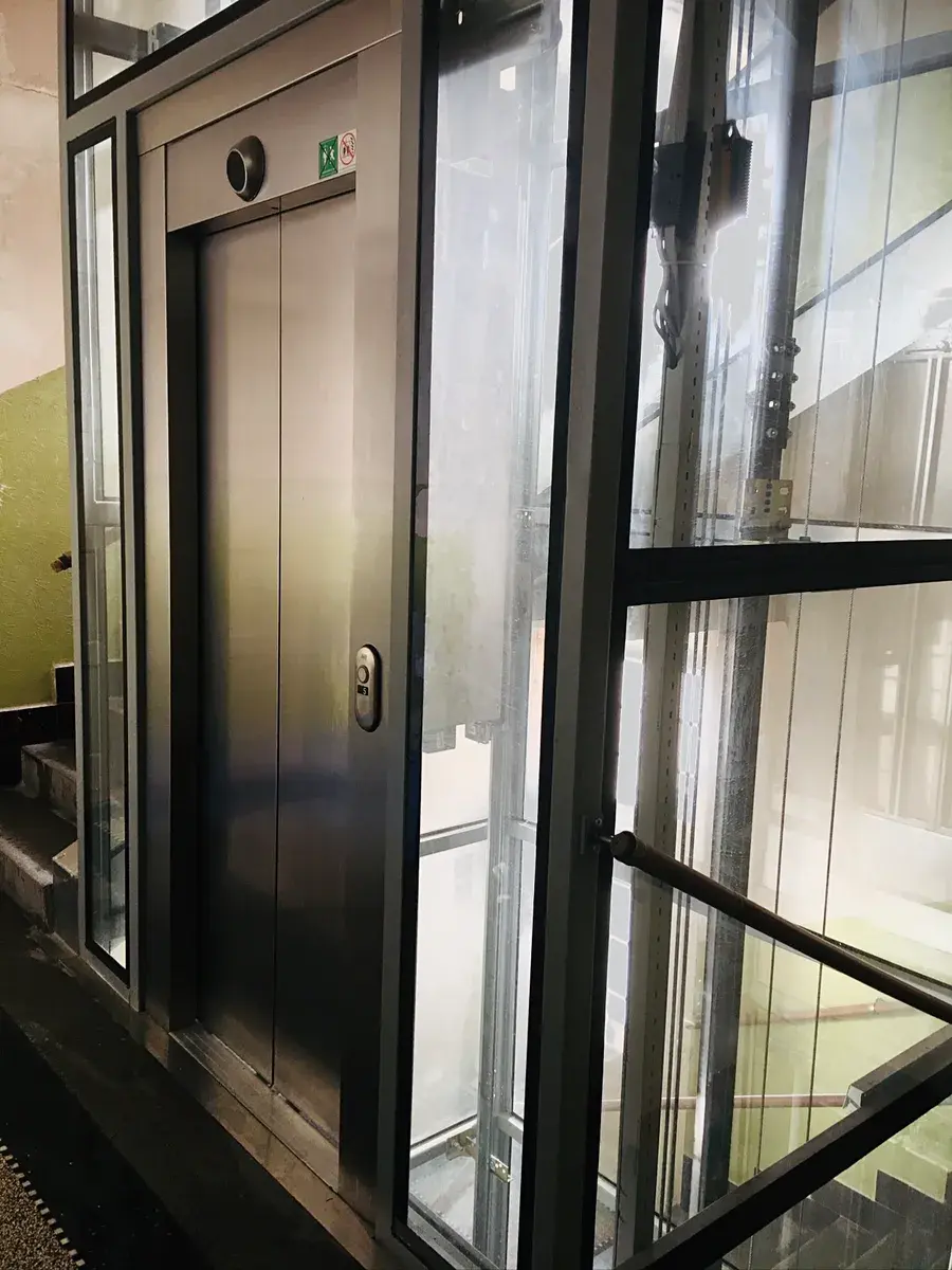 Do 2. nadzemním podlaží činžovního domu se dostaneme novým prostorným výtahem.