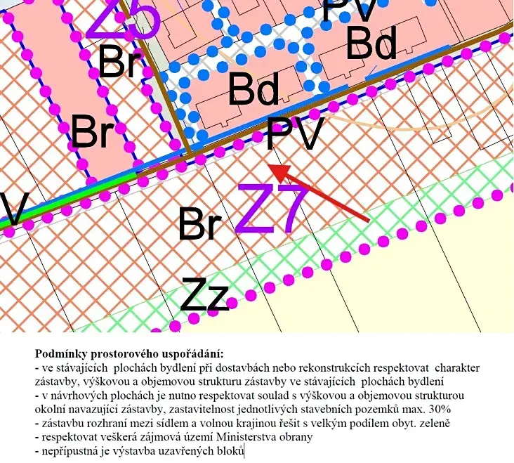 Dle platného územního plánu je pozemek veden jako plocha bydlení v rodinných domech (Br), lokalita Z7.