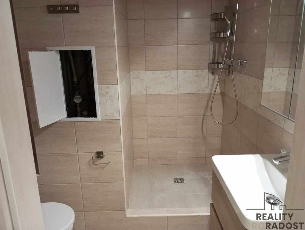 Pronájem bytu o velikosti 2+kk, 38m2, ve 3.patře, k dispozici lodžie 4m na chodbě s parkovací stáním v Krušovicích. Dispozice bytu: vstupní chodba, obývací místnost s kuchyňským koutem situovaná na západní stranu, koupelna se sprchovým koutem a WC koutem, prostor na pračku, druhý pokoj je situován na západní stranu. Byt je částečně vybaven. Dům má zateplení, samostatnou kotelnu s ohřevem vody. K vybavení náleží, kuchyňská linka, sporák. K dispozici společná zahrada na posezení a grilování, na společném pozemku lze umístit i bazén, dle dohody, možno i sklep. Výše nájmu je 11.000,-Kč, k dispozici pro 1-2 osoby, výše energií cca 4.500,-Kč, + el.energie se přepisuje na nájemce cca 1.000,-Kč, vratná kauce 16.000,-Kč, + provize zprostředkovateli.