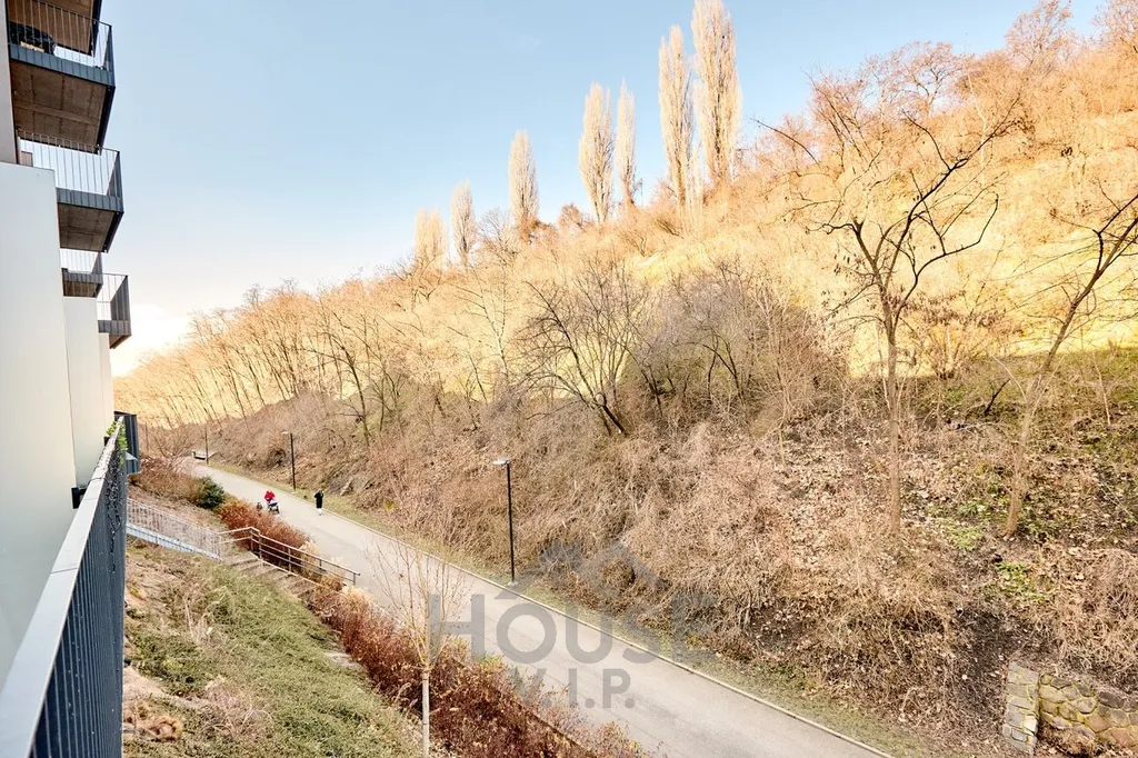 Byt je kompletně vybaven kvalitním nábytkem na míru a zaujme zejména vysokými stropy (3,1 m), které dodávají interiéru vzdušnost a pocit otevřeného prostoru. Výhodou je orientace oken směrem do zeleně parku Vítkov, díky čemuž je bydlení klidné a příjemné.