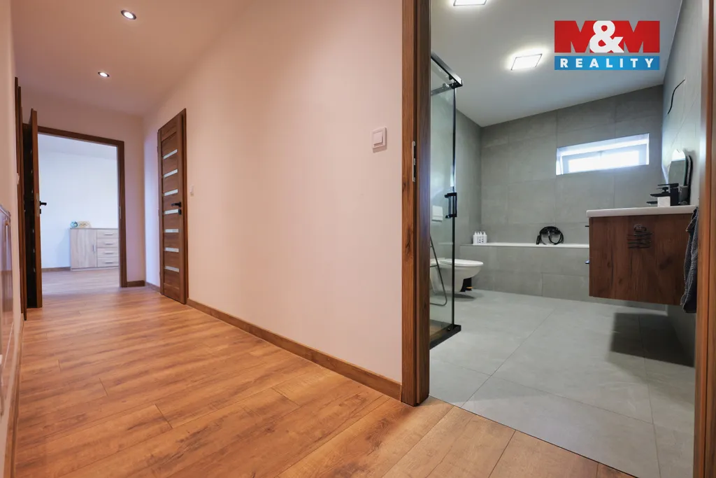 Užitná plocha činí 105 m² a dispozice je řešena jako 3+kk s možností úpravy na 4+kk. Součástí domu je také technická místnost, komora a šatna. Dům nabízí moderní technologie – tepelné čerpadlo, podlahové teplovodní vytápění a okna s trojskly, což zajišťuje nízké provozní náklady.