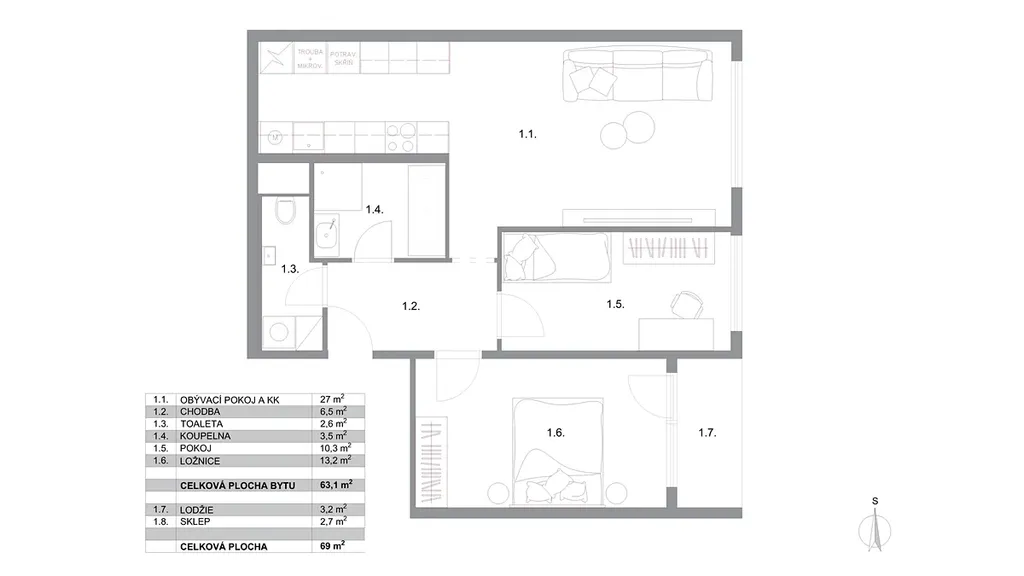 Dispozice bytu 3+kk: