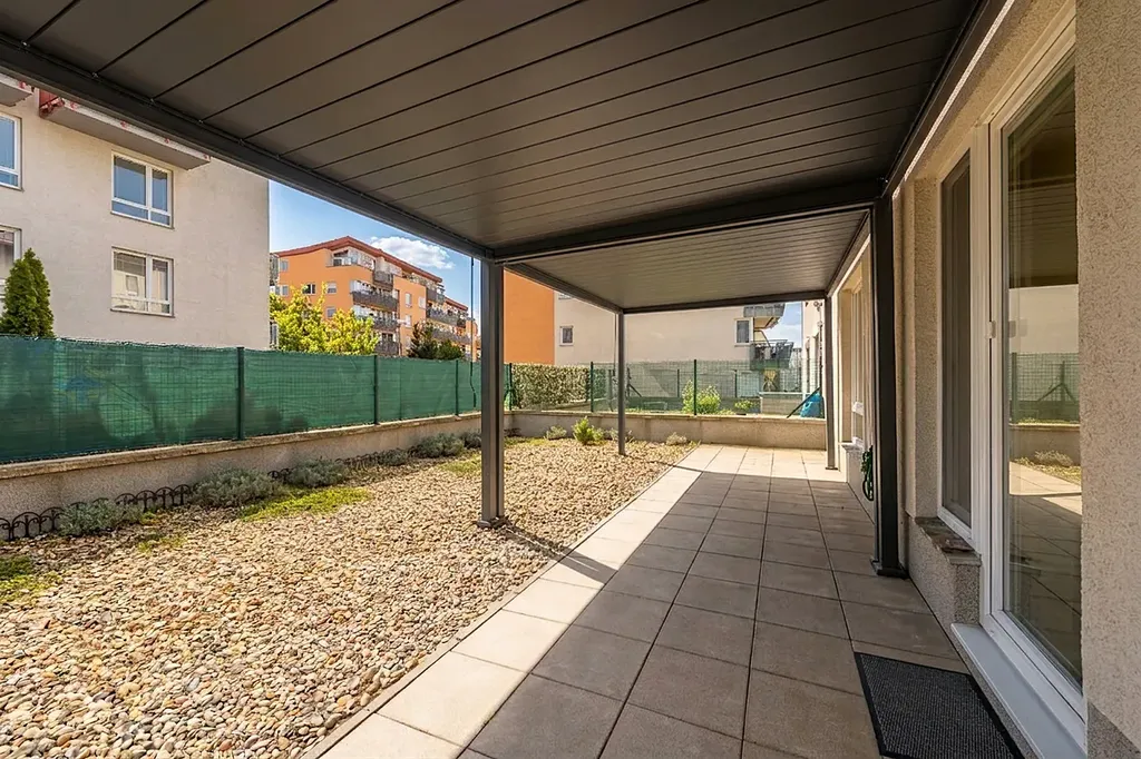 Byt je dispozičně velmi dobře řešený s kuchyní a obývacím pokojem. Dále s prostornou ložnicí, nádhernou koupelnou s vanou a sprchou a samostatnou toaletou. Byt má velkou zahradu a prostorný sklep. Dům je velmi tichý a přímo u domu je dostatek zeleně a přírody (Centrální park Stodůlky, Prokopské údolí) a zároveň kousek k metru (Metro B Hůrka 15 min chůze).