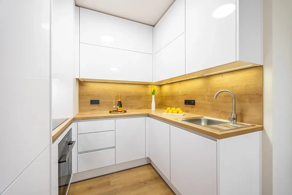 - nová kuchyňská linka vyrobena na míru se spotřebiči (značková elektrická trouba, myčka, indukční deska, digestoř, osvětlení, dřez)