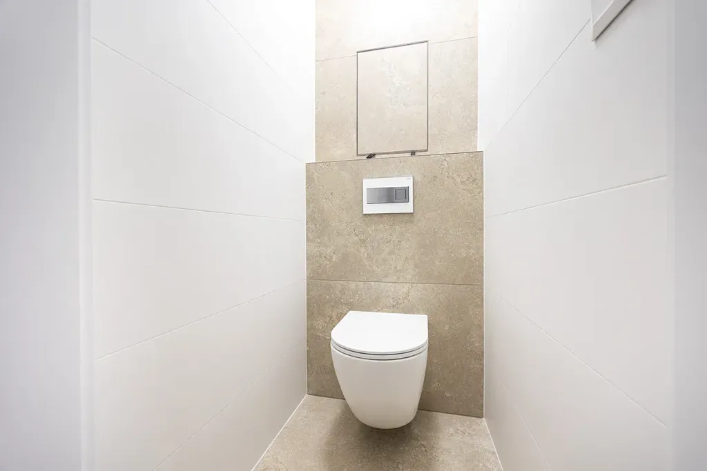 Koupelna je s vanou, sprchovým koutem, podlahovým topením a designovým umyvadlem na praktické skříňce se dvěma zásuvkami a topným žebříkem. V bytě je samostatná toaleta. Byt má dostatek místa na vestavěné skříně a úložné prostory.