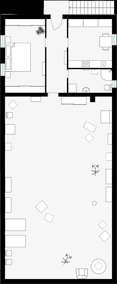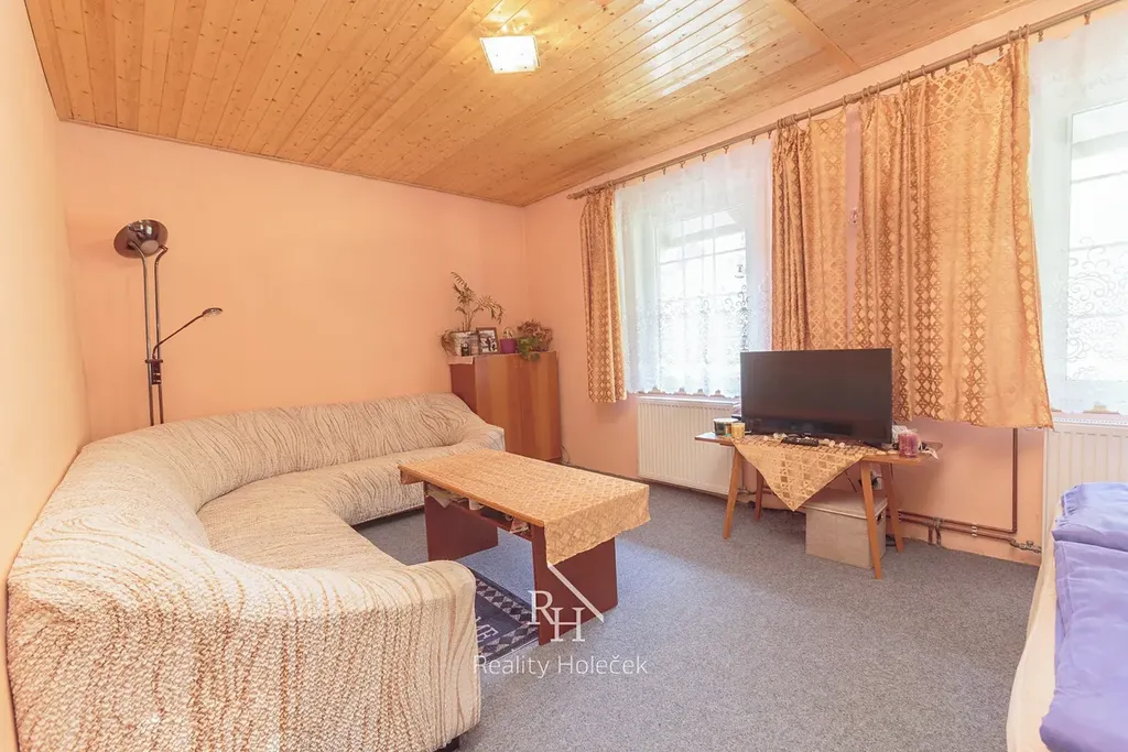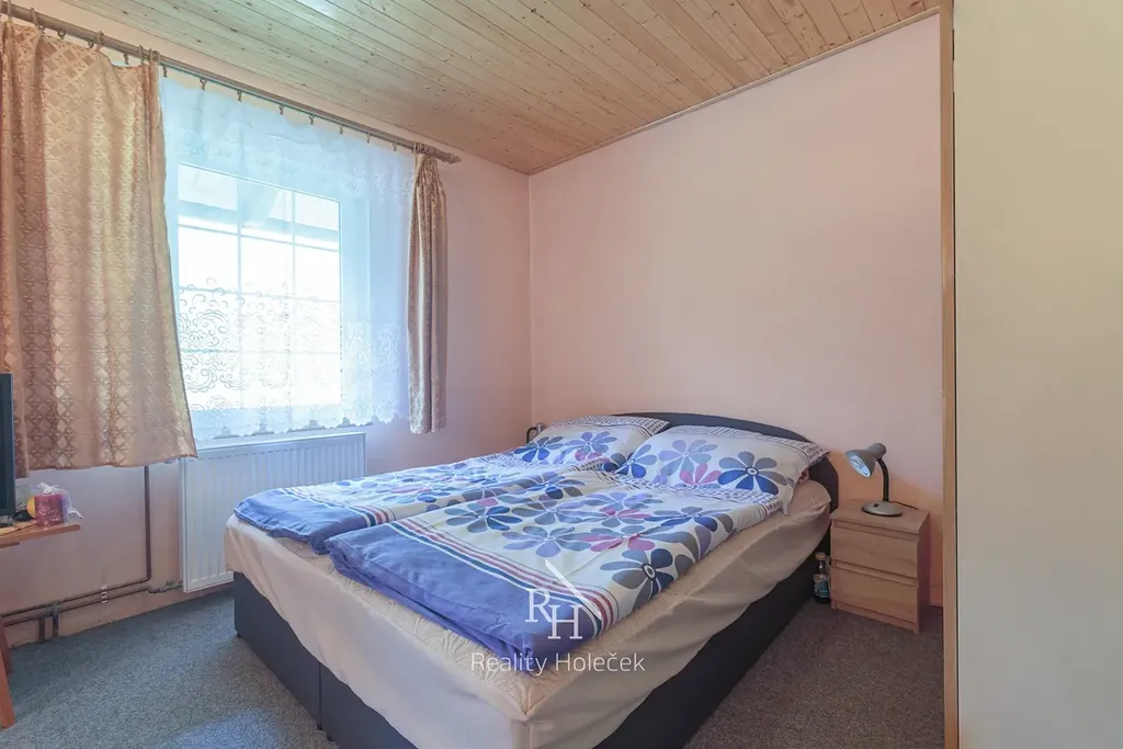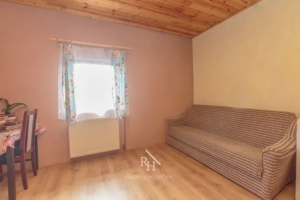 V patře domu se nachází plnohodnotný byt se dvěma pokoji, kuchyní a koupelnou o celkové výměře necelých 50 m2. Ideální pro provozovatele restaurace nebo k pronájmu.