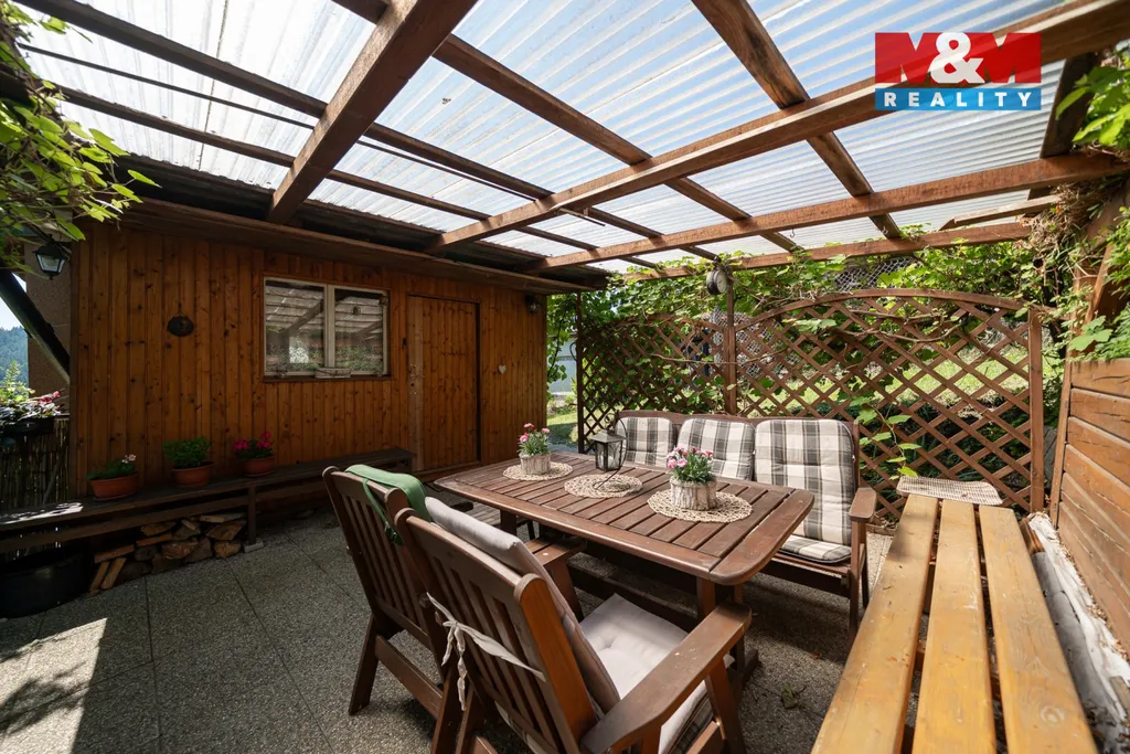 Nabízíme k prodeji rekreační chatu v žádané lokalitě obce Dolní Bušínov, stojící na vlastním pozemku o celkové ploše 560 m². Chata prošla nákladnou rekonstrukcí a přístavbou obytného prostoru. Na pozemku vlastní vrtaná studna, proto je možné využívat nemovitost celoročně. V nemovitosti je elektroinstalace již v mědi, rozvody vody i odpadů již v plastu. Pro vyšší komfort užívání osazeno klimatizační jednotkou, která umí nemovitost příjemně ochladit nebo v případě potřeby vytopit, další možnost vytápění je krbovými kamny a v kuchyni i ložnici se nachází elektrické podlahové vytápění. Nová obytná část je zateplena 10 cm polystyrenem. Dále je venkovní zastřešené posezení s grilem a vnitřní zastřešenou terasu, na kterou se dostanete přímo z hlavní obytné místnosti. V případě, že vás tato nemovitost zaujala, tak nás neváhejte kontaktovat. Po domluvě vás rádi nemovitostí provedeme.