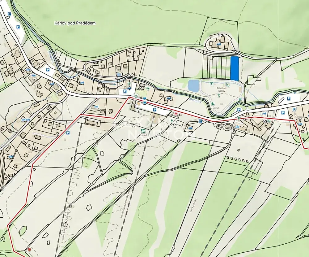 Pozemek se nachází v bezprostřední blízkosti skiareálu Karlov Ski Area, což zajišťuje perfektní dostupnost na sjezdovky doslova pár kroků od budoucí stavby. Lokalita je vyhledávaná nejen v zimní sezóně, ale i celoročně – turistika, cyklistika, běžky i relax v nádherné horské přírodě.