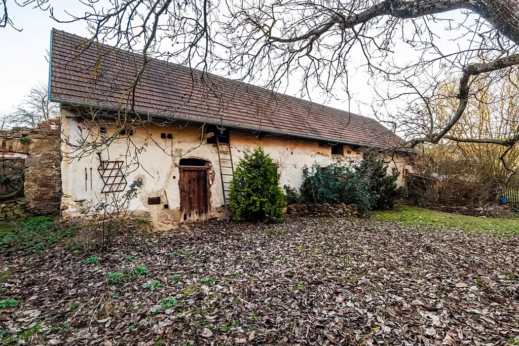 Hlavní budova s novou střešní krytinou dispozičně řešená jako 1+1, podlahová plocha 120 m2, dvě další hospodářské stavby - stodola a maštal.