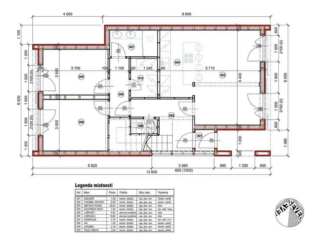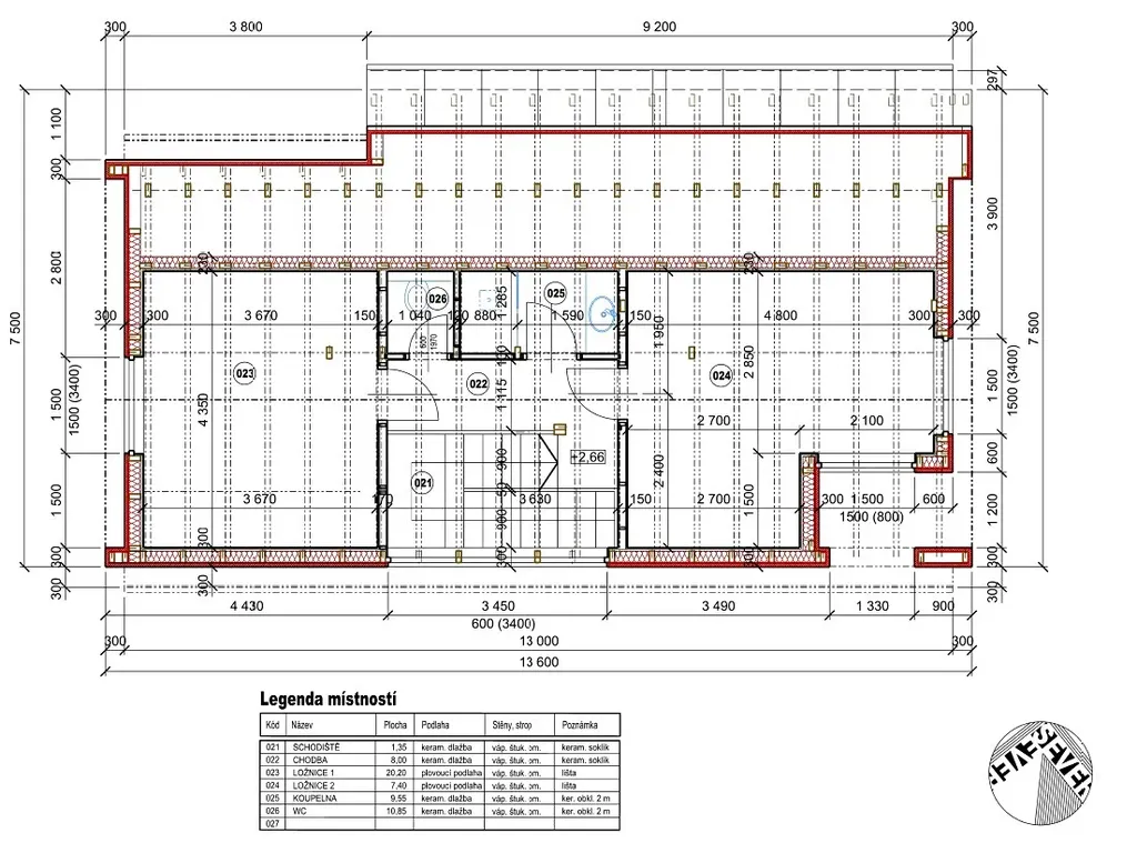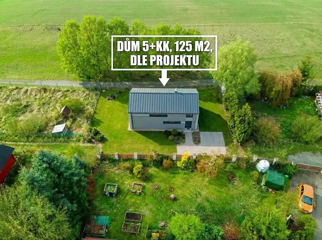 Součástí ceny pozemku je projekt patrového rodinného domu 5+kk (obývací pokoj s kuchyní, 4 ložnice, 2 koupelny a 2 WC, technická místnost) o celkové obytné ploše 125 m2.