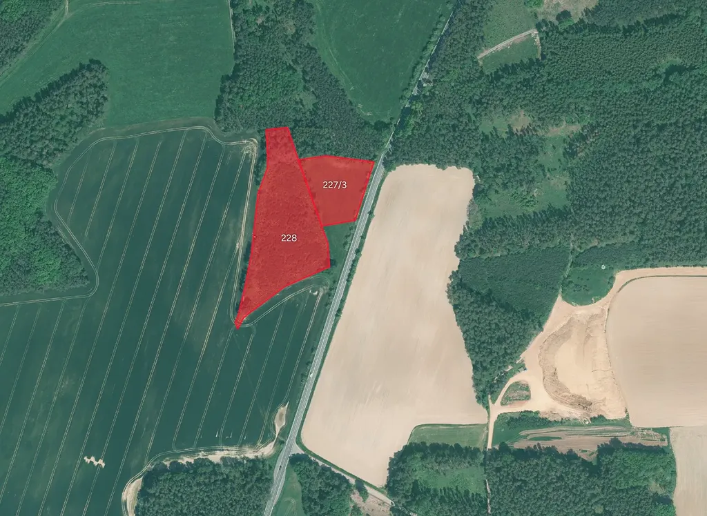 Předně je předmětem prodeje lesní pozemek. Jeho celková výměra je 11 937 m² a je nabízen ve 100% vlastnictví. Na katastru nemovitostí je zapsán pod parcelním číslem 228 na listu vlastnictví 244.