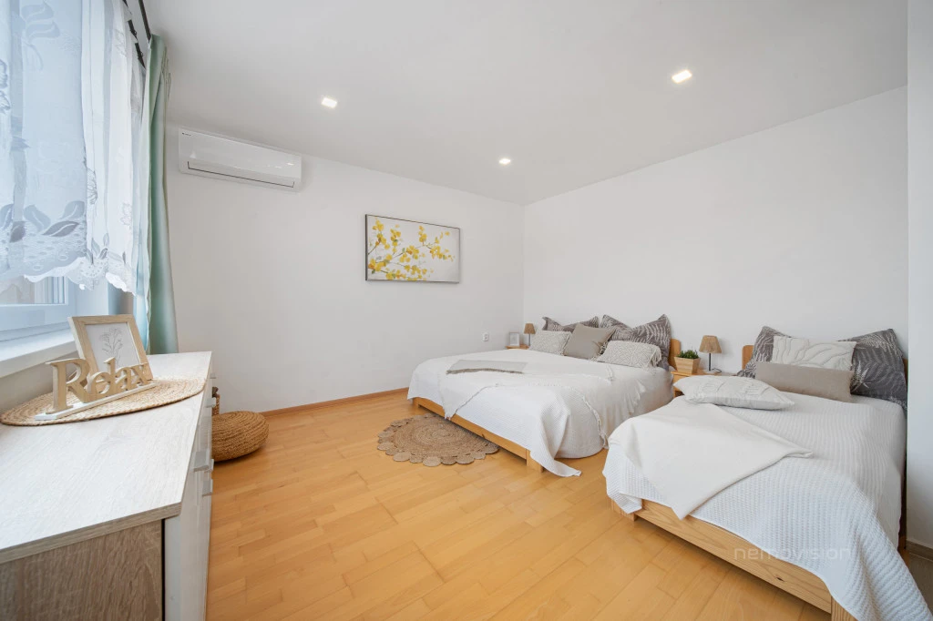 Dům o užitné ploše 111 m², stojící na pozemku 228 m², je prakticky rozdělen na čtyři samostatné apartmány, které umožňují maximální flexibilitu využití.