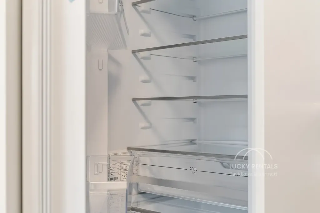 Byt se pronajímá nezařízený, ve vysokém standardu, vybavený novou kuchyňskou linkou značky Oresi s vestavěnými spotřebiči na míru (myčka nádobí, lednice, varná deska, trouba, digestoř). Bezpečnostní vstupní dveře značky Sapeli, vinylové podlahy, dlažba, kvalitní sanita v koupelně. K bytu náleží sklep.