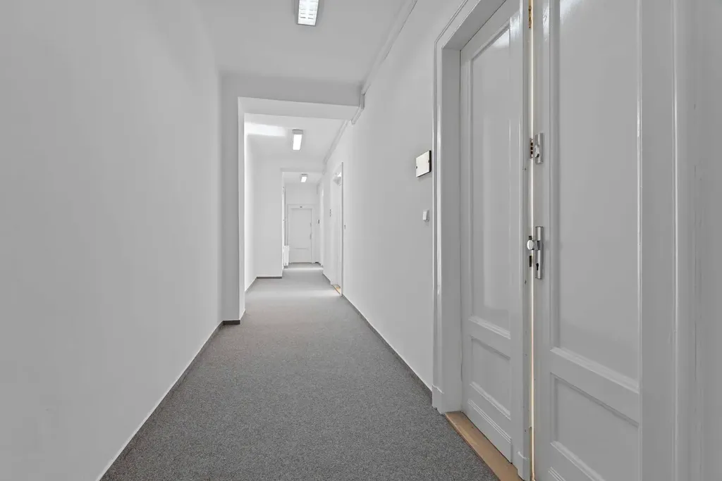 Kancelářské prostory o celkové ploše 24 m² se nachází v 5. nadzemním podlaží. K dispozici je společná kuchyňka a toalety na patře.