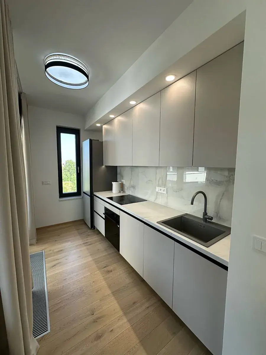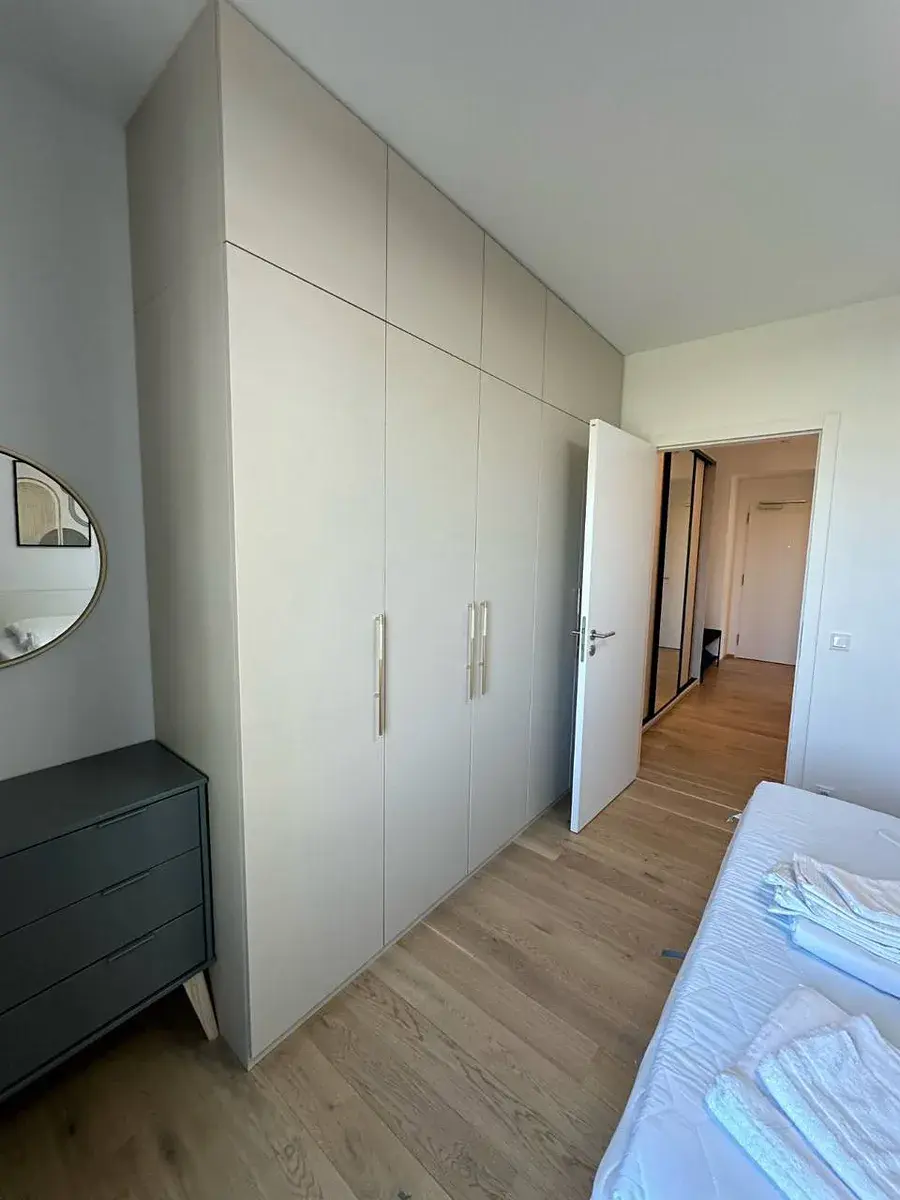 Byt se skládá z prostorného obývacího pokoje spojeného s kuchyní, samostatné ložnice, chodby a koupelny s toaletou. Byt je zařízen a vybaven novým nábytkem.