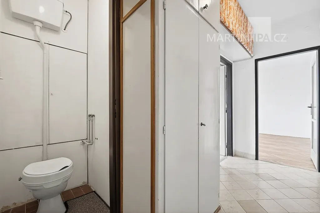 Kuchyň je zde opravdu samostatným prostorem s vlastním oknem. To je přesně ten typ dispozice, který vám nechává svobodu. Můžete si ponechat klasické, praktické 2+1, nebo při rekonstrukci koncept posunout dál a otevřít byt modernějšímu stylu života tím, že ji propojíte s obývákem.