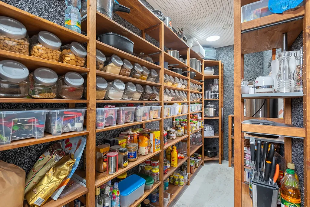 Hlavní dům je řešen jako bezbariérový bungalov, který poskytuje komfortní zázemí pro celou rodinu i případné dvougenerační bydlení. Dispozice zahrnuje čtyři ložnice, dvě pracovny, čtyři koupelny, šatnu a dvě samostatná WC. Dominantou je velkorysý obývací prostor o výměře 88 m² s kuchyní Bauformat ve vysokém lesku a impozantním ostrůvkem o velikosti 1,2 × 3,7 m, vybavený spotřebiči Siemens a Miele. Horní podlaží je koncipováno jako společenská a relaxační zóna s fitness a profesionálním domácím kinem s akustickou úpravou.