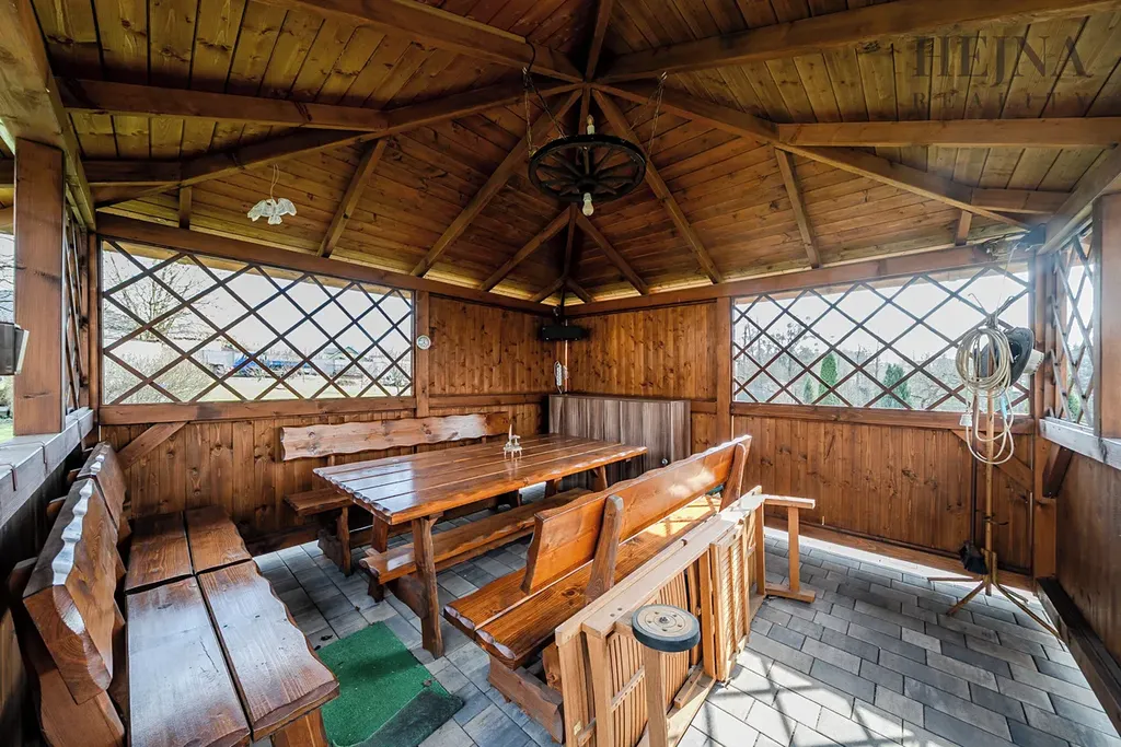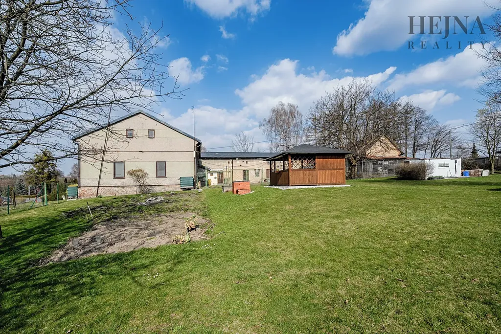 Na pozemku se nachází hospodářská budova a stodola, které rozšiřují možnosti využití – ať už pro podnikání, dílnu nebo skladování. Pozemek je oplocený a rozdělený na dvě části, přední část tvoří dvůr s hospodářskými stavbami, zadní část je zahrada s altánem, posezením, ovocnými stromy a keři, ideální pro odpočinek i zahradničení.