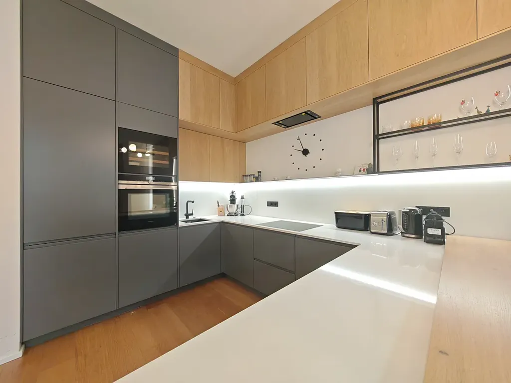Interiér zaujme nadstandardní výškou stropů 3,05 m, která bytu dodává světlost a pocit vzdušnosti. Dispozice zahrnuje prostorný obývací pokoj s plně vybavenou kuchyní (včetně všech spotřebičů a vinotéky), samostatné WC pro hosty a koupelnu s vanou.