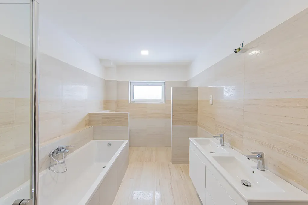 Dům je již dokončen, kromě těchto zmíněných zařizovacích předmětů v interiéru, které umožňují klientovi vybrat si materiály a barvy. Nyní ještě budeme provádět zpevněné plochy kolem domu a zámkové dlažby.