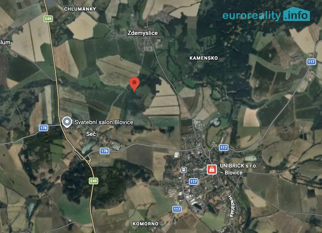 Tato nemovitost se nachází v katastrálním území Blovice, v klidné rekreační oblasti mezi obcemi Seč a Zdemyslice na pozemku o rozloze 1617 m².