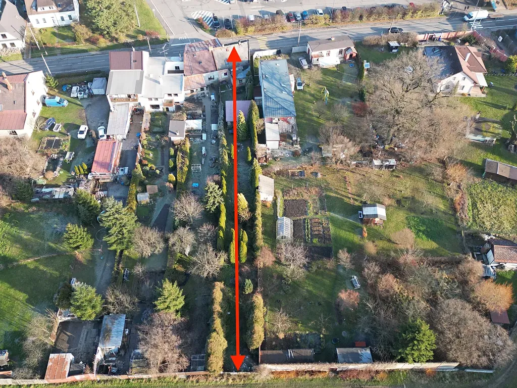 Za domem se nachází prostorná zahrada, se vzrostlými stromy. Na pozemku za domem instalována dřevěná kůlna, která je velmi zachovalá.