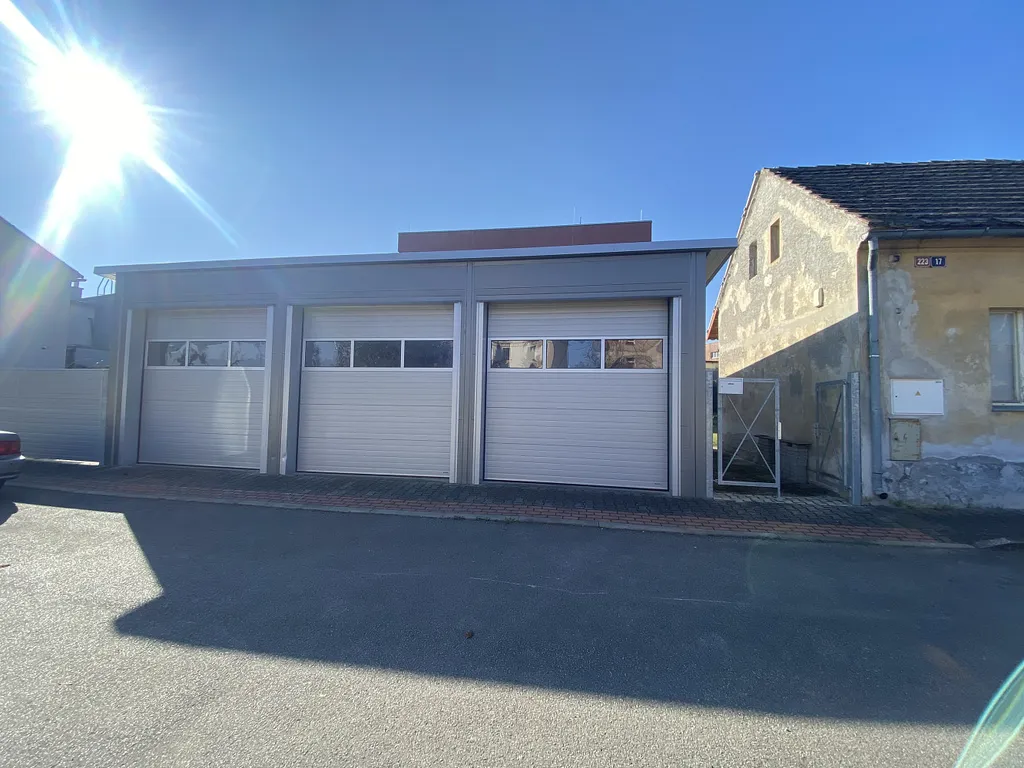 Dále se na pozemku nachází nová, moderní garáž. Zastavěnou plocha garáže 78m², výška 3,85m, světlá výška 3m, vyrobená z PUR panelů, osazená sekčními vraty. Garáž je členěna vnitřní příčkou na 1 stání např. obytného auta a na stání pro 2 osobní automobily. Velkorysý prostor a napojení na rozvody nabízí různé další možnosti využití.