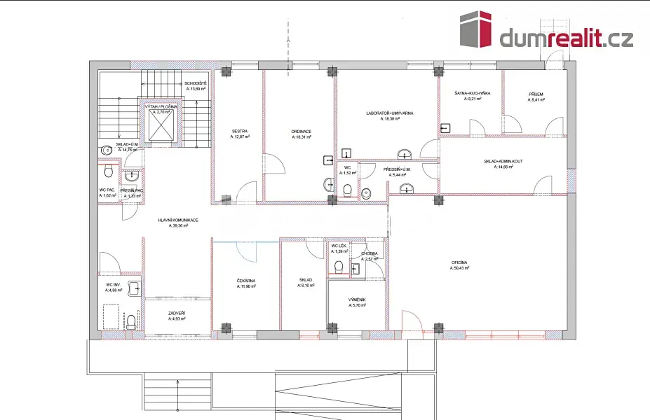 Pronájem ordinace, Most, J. A. Komenského, 40 m2